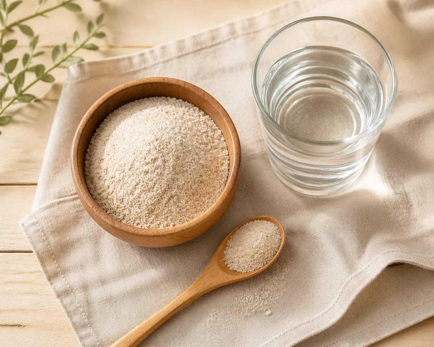 4. Pudră vs. husks — ambele sunt eficiente. Pudra se dizolvă mai ușor. Husks au textură mai naturală dar cer mai multă apă.